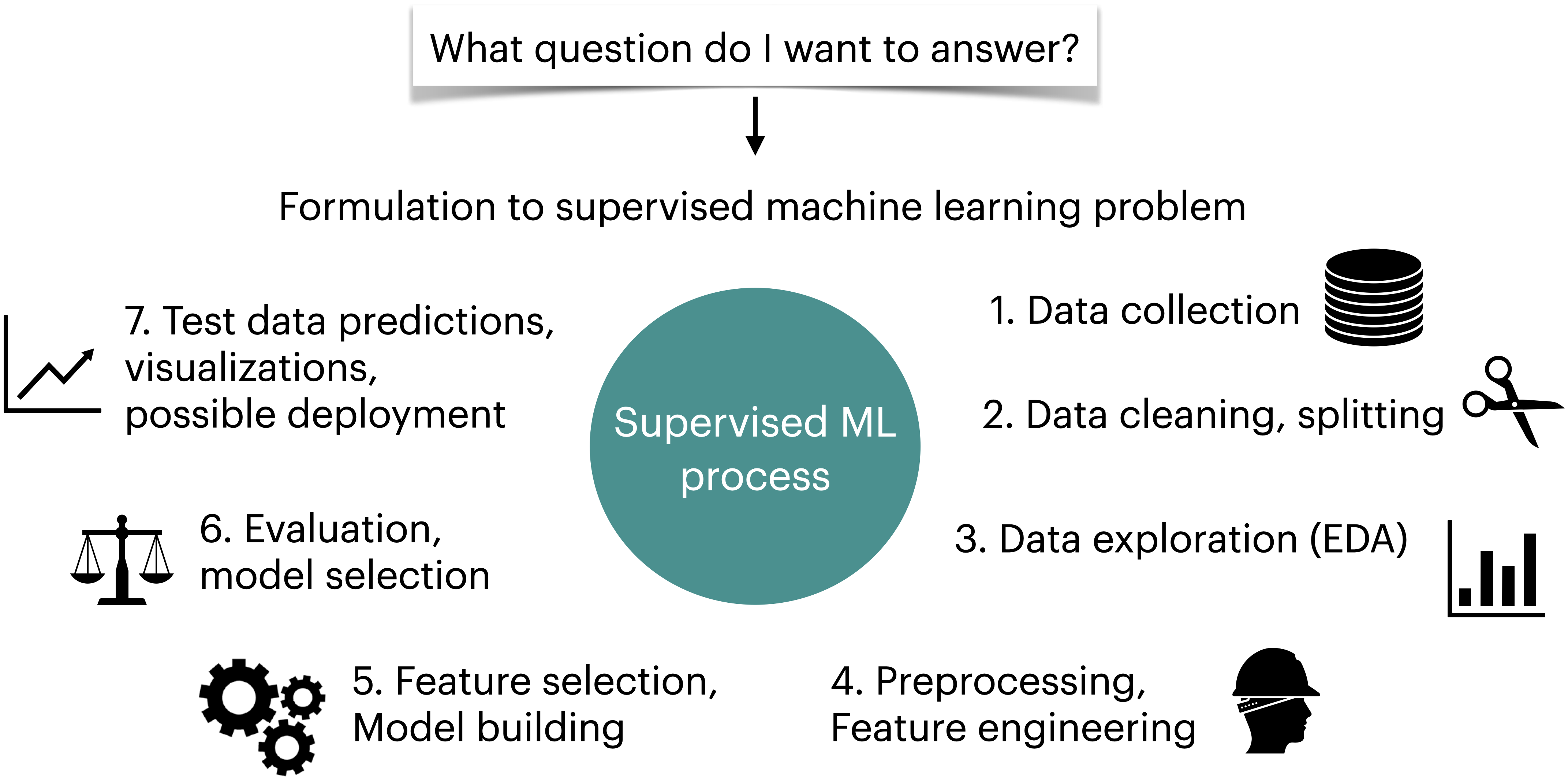 We will build machine learning pipelines in this course, focusing on some of the steps above.