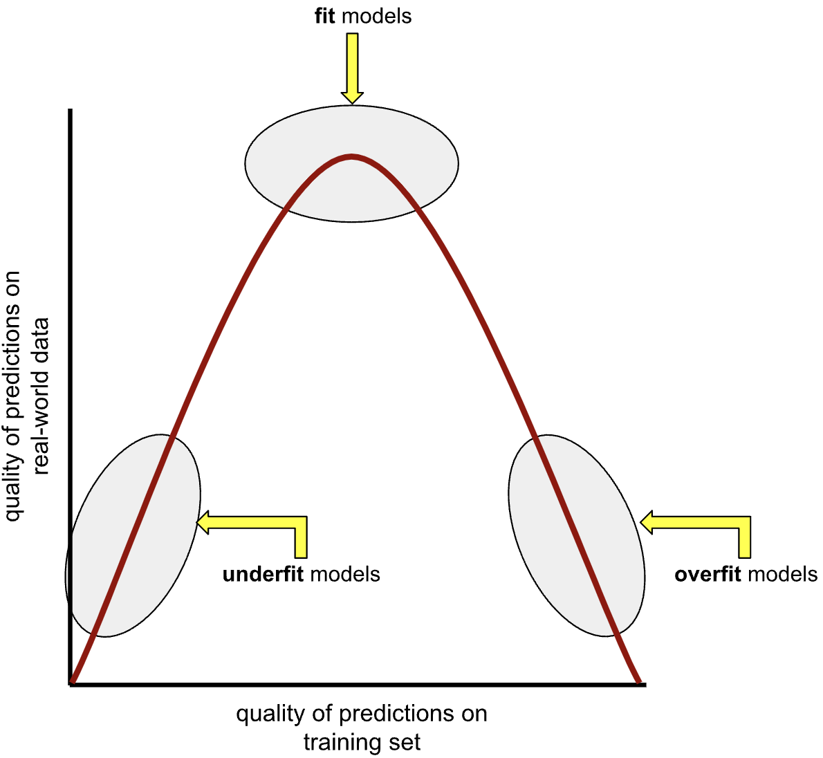 - An overfit model matches the training set so closely that it fails to make correct predictions on new unseen data.